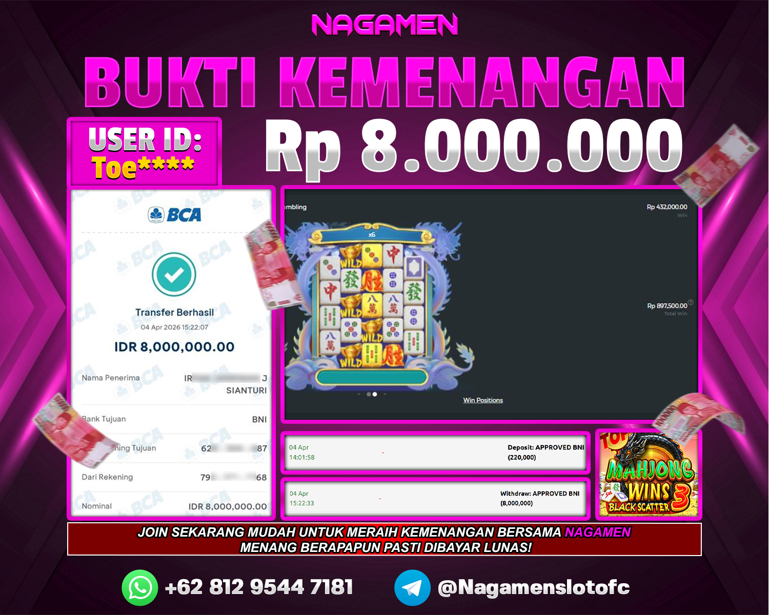 Dengan dukungan sistem keamanan tingkat tinggi, transaksi cepat, serta tampilan user-friendly, NAGAMENSLOT siap memberikan pengalaman bermain yang nyaman dan menyenangkan, baik bagi pemula maupun pemain berpengalaman.