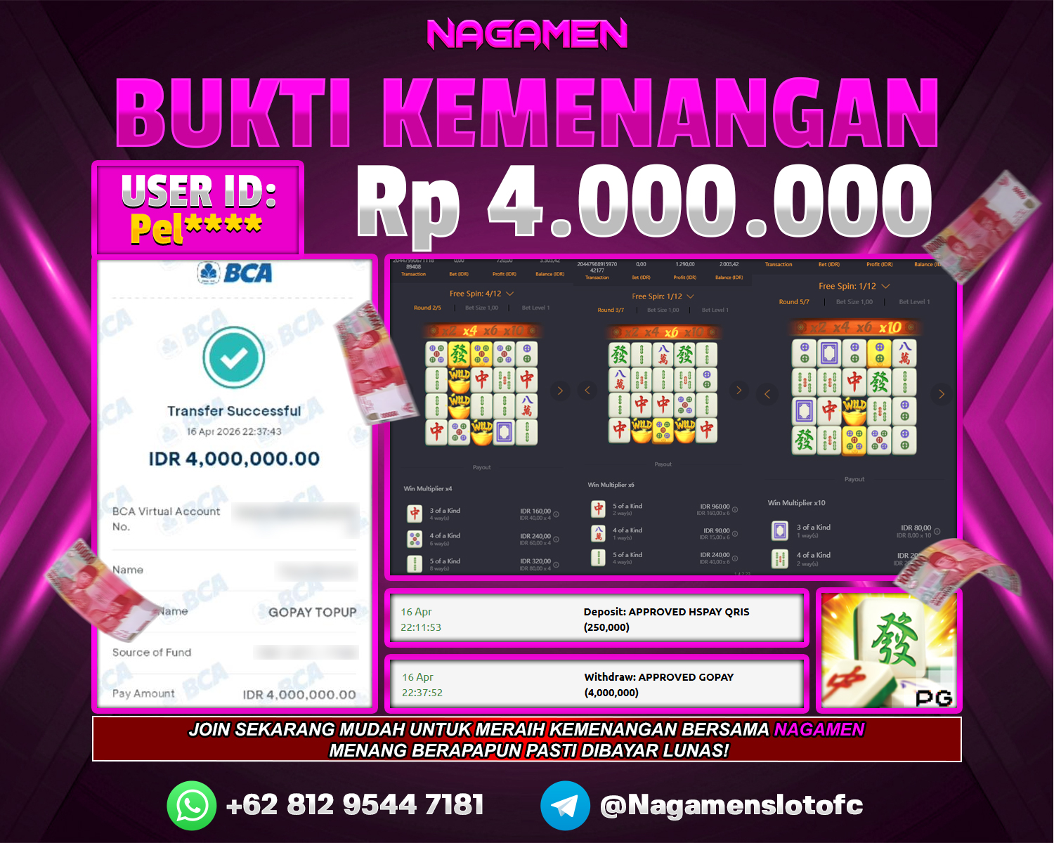 Mulai bermain hanya dengan deposit Rp 10.000 saja! Proses withdraw pun cepat, hanya butuh saldo Rp 20.000 tanpa biaya admin tersembunyi. Dukungan metode pembayaran lengkap: transfer bank, e-wallet, dan QRIS siap melayani Anda 24 jam nonstop.
