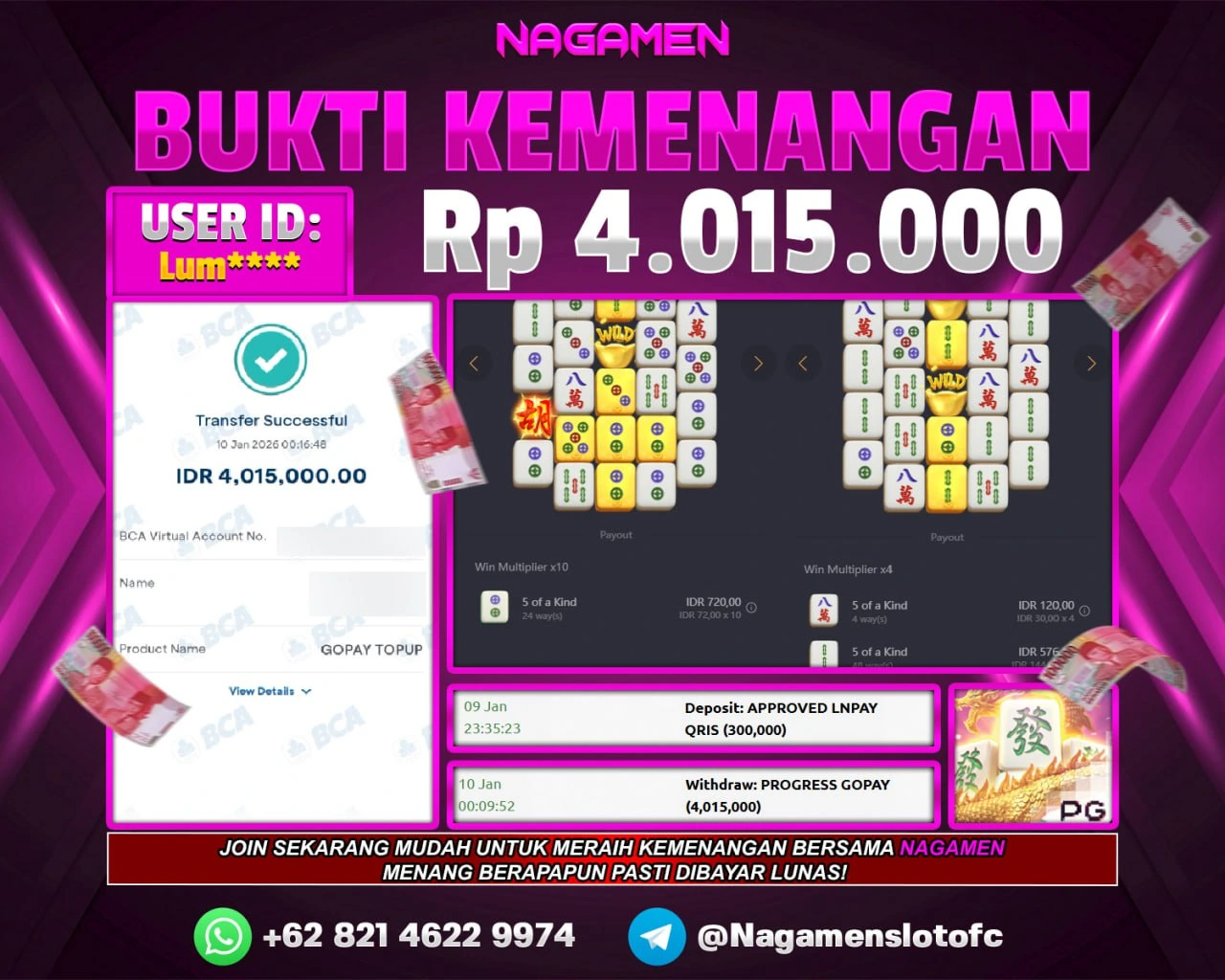 π Bukti transaksi ASLI & VALID sudah kami siapkan, walau disamarkan demi keamanan data kamu. Tapi jangan khawatir, pemenang dapat bukti lengkap tanpa sensor sesuai aturan kami.