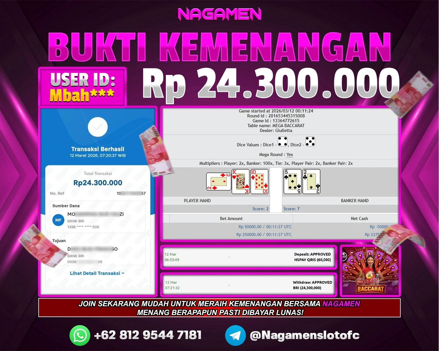 β¨ JACKPOT DI Mega Baccarat β¨