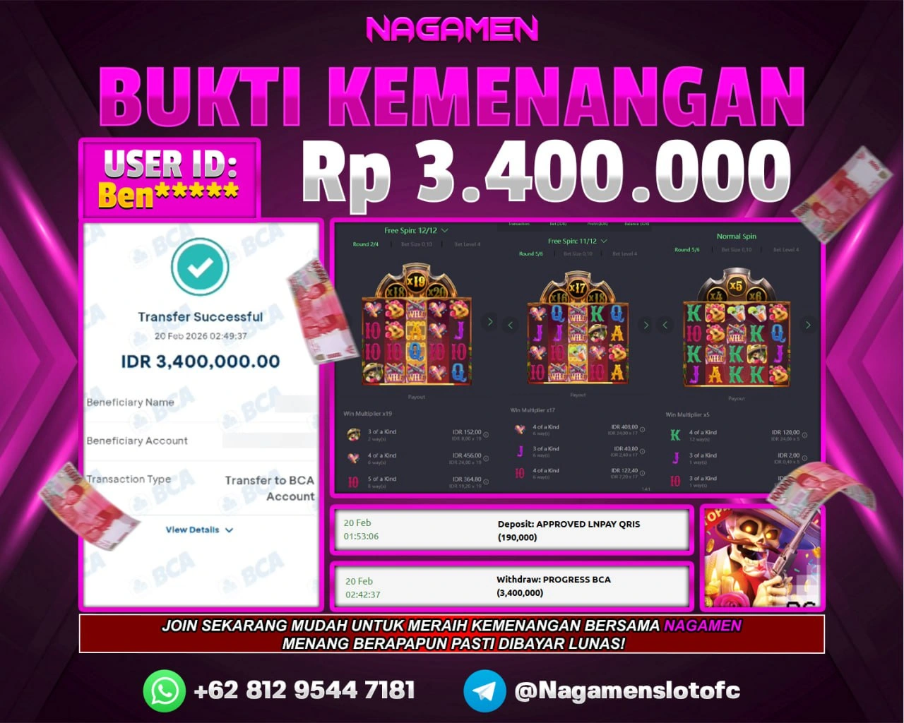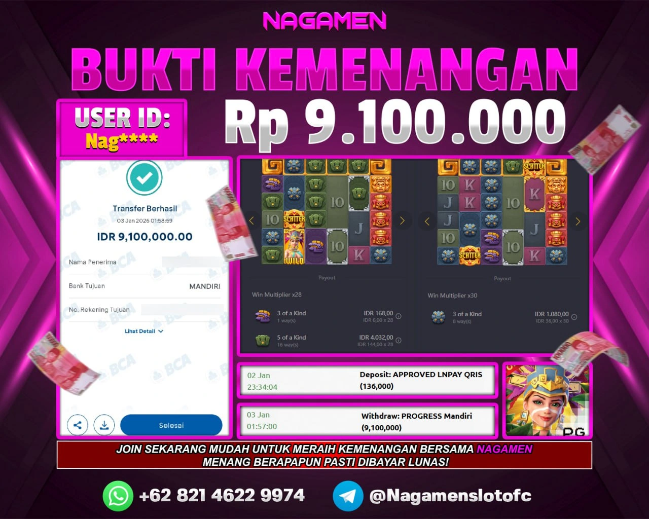 π Bukti transaksi ASLI & VALID sudah kami siapkan, walau disamarkan demi keamanan data kamu. Tapi jangan khawatir, pemenang dapat bukti lengkap tanpa sensor sesuai aturan kami.