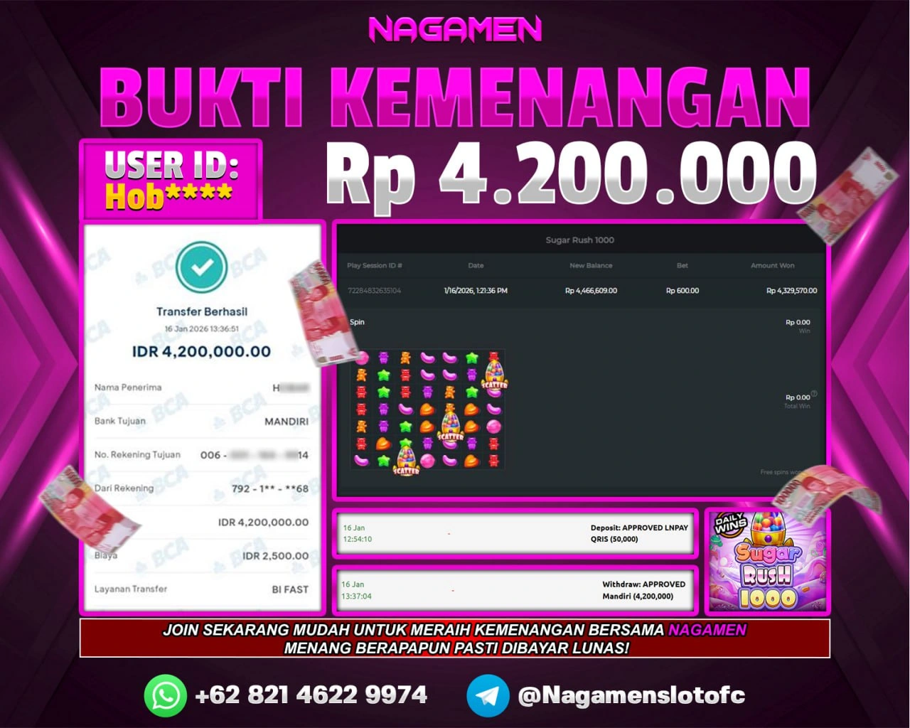 π Bukti transaksi ASLI & VALID sudah kami siapkan, walau disamarkan demi keamanan data kamu. Tapi jangan khawatir, pemenang dapat bukti lengkap tanpa sensor sesuai aturan kami.